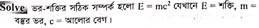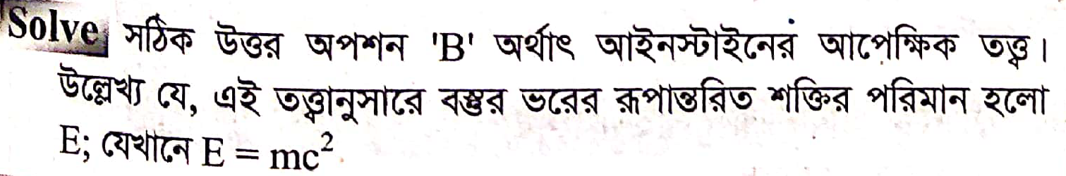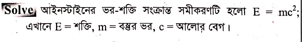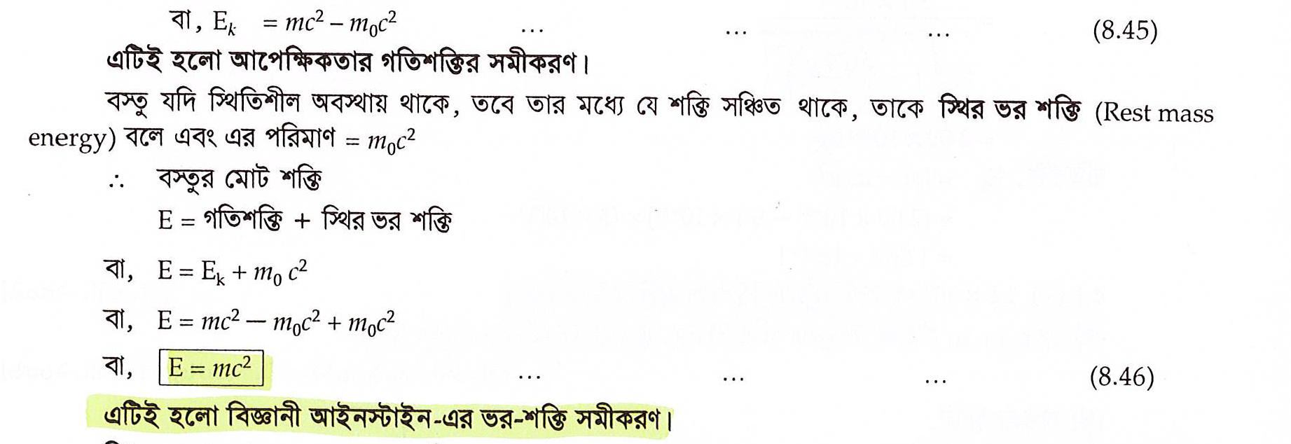 আইনস্টাইন এর ভর-শক্তির সূত্রানুসারে কোনটি সঠিক?