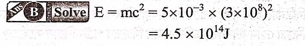 আমরা জানি, E=mc^2=(1×10^-3)×(3×10^8)^2=9×10^13J