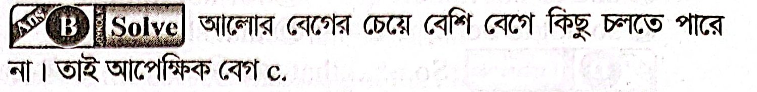 A, B দুটি ফোটন পরস্পর বিপরীত দিকে C গতিবেগে চলছে।B ফোটনের সাথে A ফোটনের আপেক্ষিক বেগ কত?