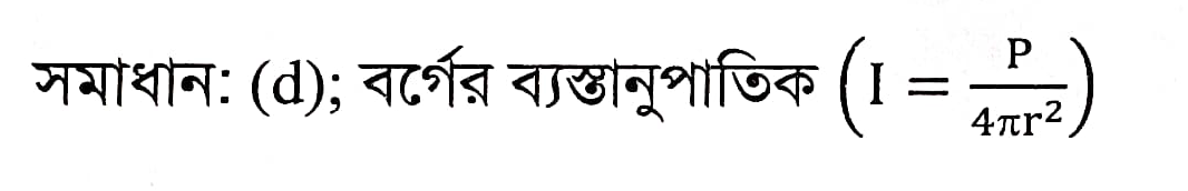 একটি বিন্দু উৎস থেকে শব্দ তরঙ্গ বের হচ্ছে। কোন একটি বিন্দুতে শব্দের তীব্রতা উৎস থেকে দূরত্বের-