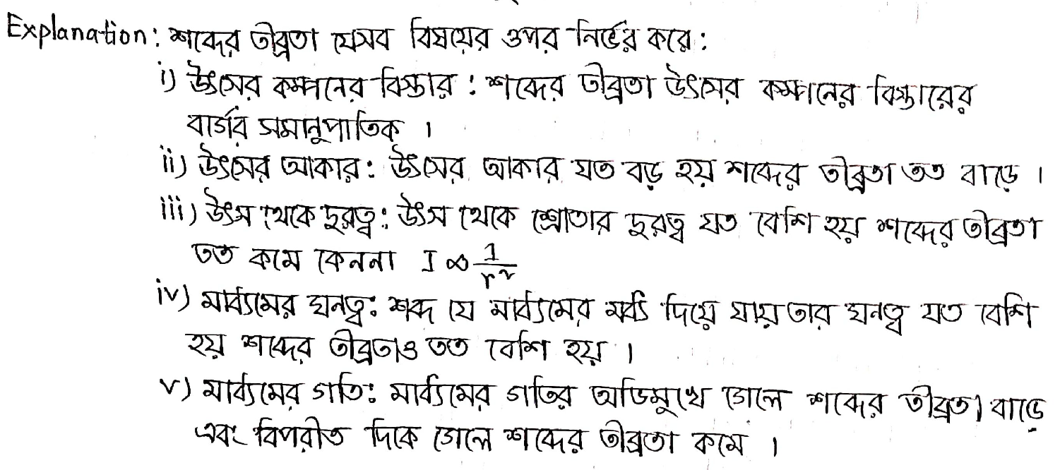যে মাধ্যমের মধ্য দিয়ে শব্দ তরঙ্গ সঞ্চালিত হয় তার ঘনত্ব বেশি হলে শব্দের তীব্রতা বেশি হয়