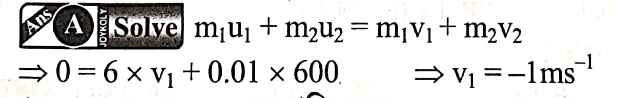 6 Kg ভরের একটি বন্ধুক হতে 0.01 Kg ভরের একটি গুলি 600 ms-1 বেগে বের হয়ে গেল। বন্ধুকের পাশ্চাৎ বেগ কত?