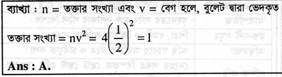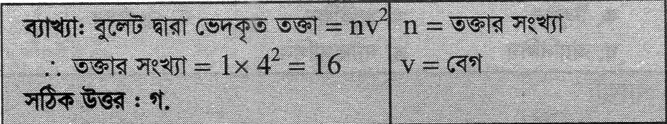 একটি রাইফেলের গুলি নির্দিষ্ট পুরুত্বের একটি তক্তা ভেদ করতে পারে। এরুপ 4 টি তক্তা ভেদ করতে গুলির বেগ কত গুণ করতে হবে ?