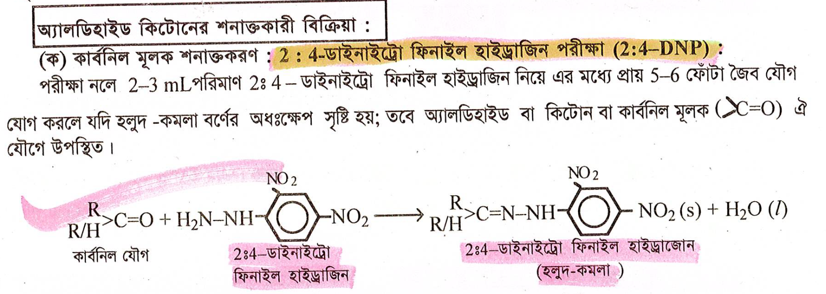 2:4 DNP টেস্টে অধঃক্ষেপের বর্ণ কেমন হয়?