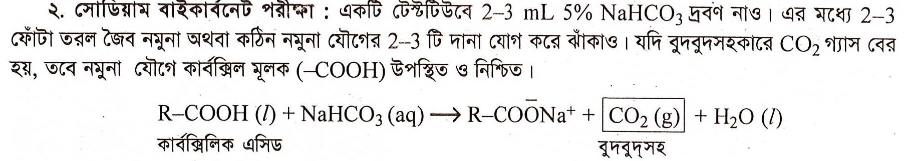 NaHCO3 দ্রবণসহ পরীক্ষা