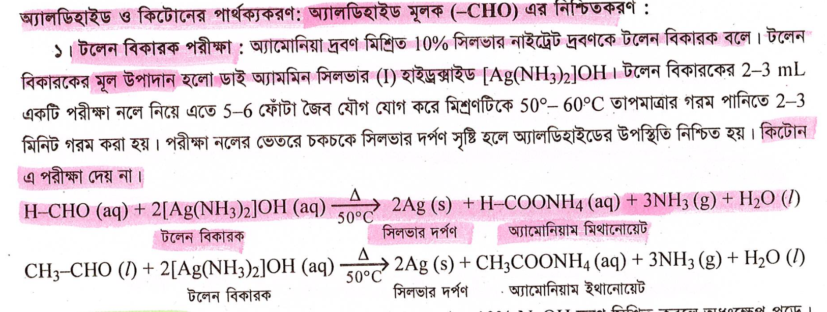 অ্যামোনিয়াক্যাল সিলভার নাইট্রেট দ্রবণ অ্যালডিহাইডকে জারিত করে এসিড উৎপন্ন করে