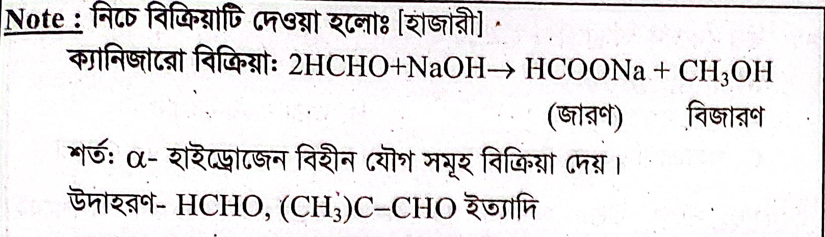 H-CHO + NaOH → CH3OH + HCOONa বিক্রিয়াটির নাম-