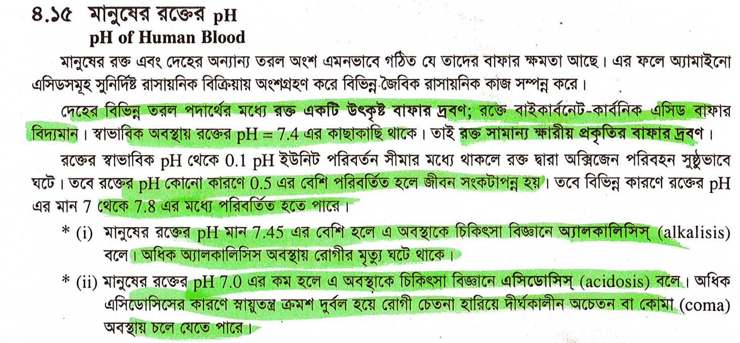 Ref: Az - 179 ব্যাখ্যা: রক্তের pH এর মান গড়ে 7.4