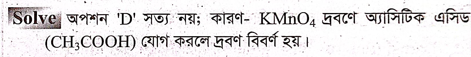 KMnO4 দ্রবনে যোগ করলে দ্রবণ বিবর্ণ হয় না