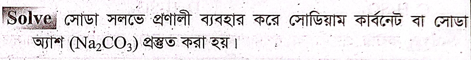সোডা সলভে প্ৰণালী ব্যবহৃত হয় কোনটি তৈরীর জন্য?