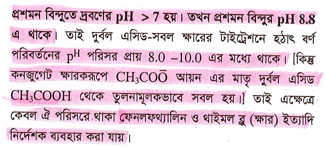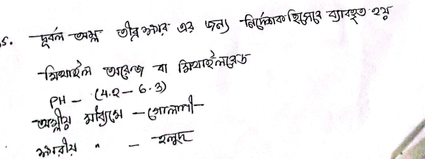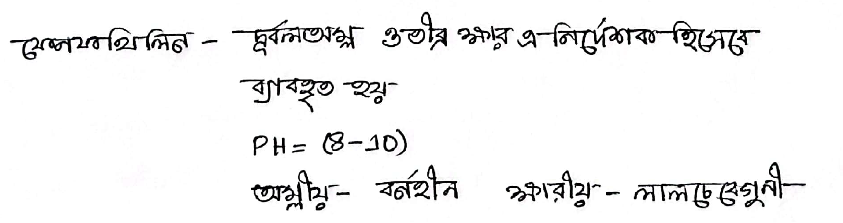 দূর্বল এসিড ও সবল ক্ষার এর টাইট্রেশনে কোন নির্দেশক দ্বারা ব্যবহ্রত হয়?