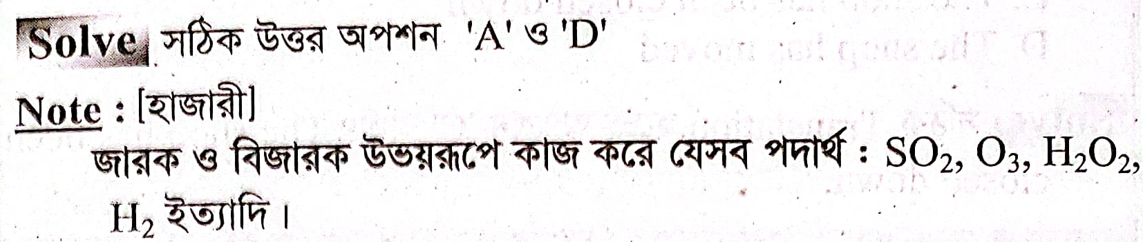 কোনটি জারক ও বিজারক উভয় রুপে কাজ করে?