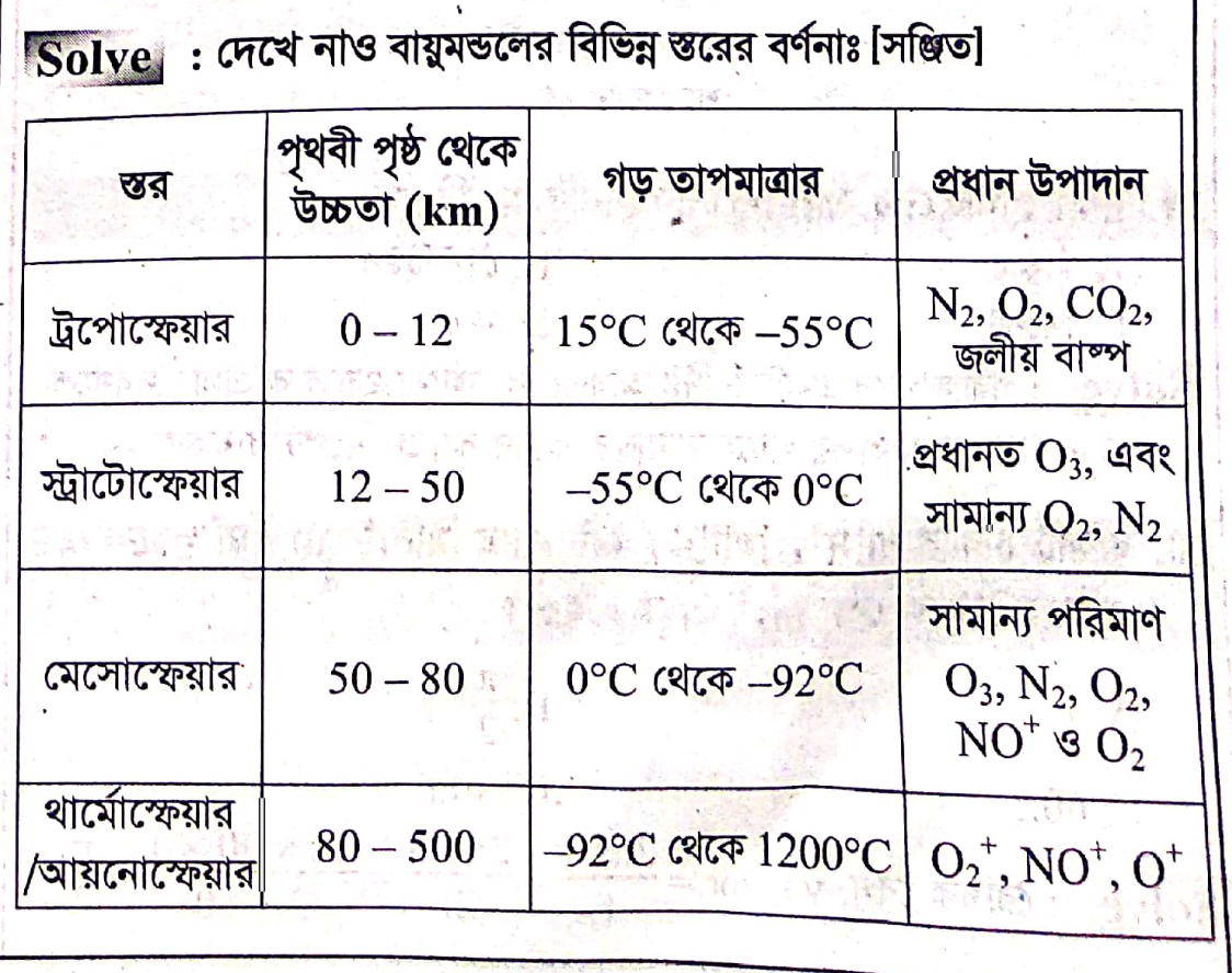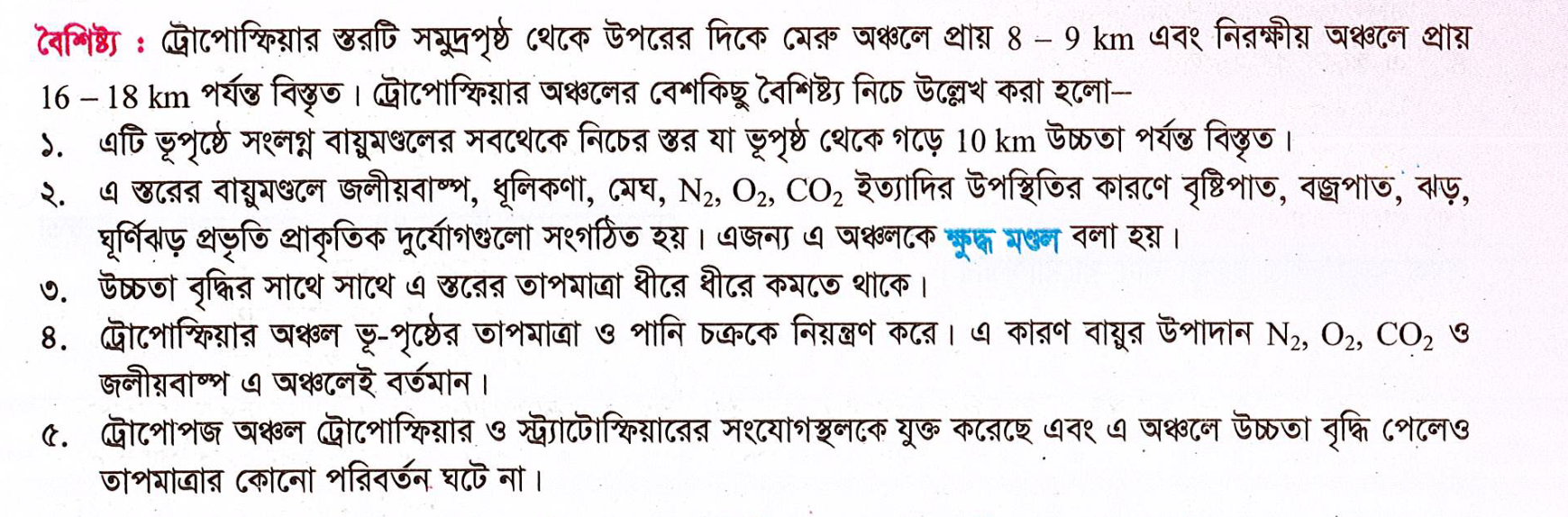 বায়ুমন্ডলের স্ট্র্যাটোস্ফিয়ার স্তরের মূল উপাদান কোনটি?