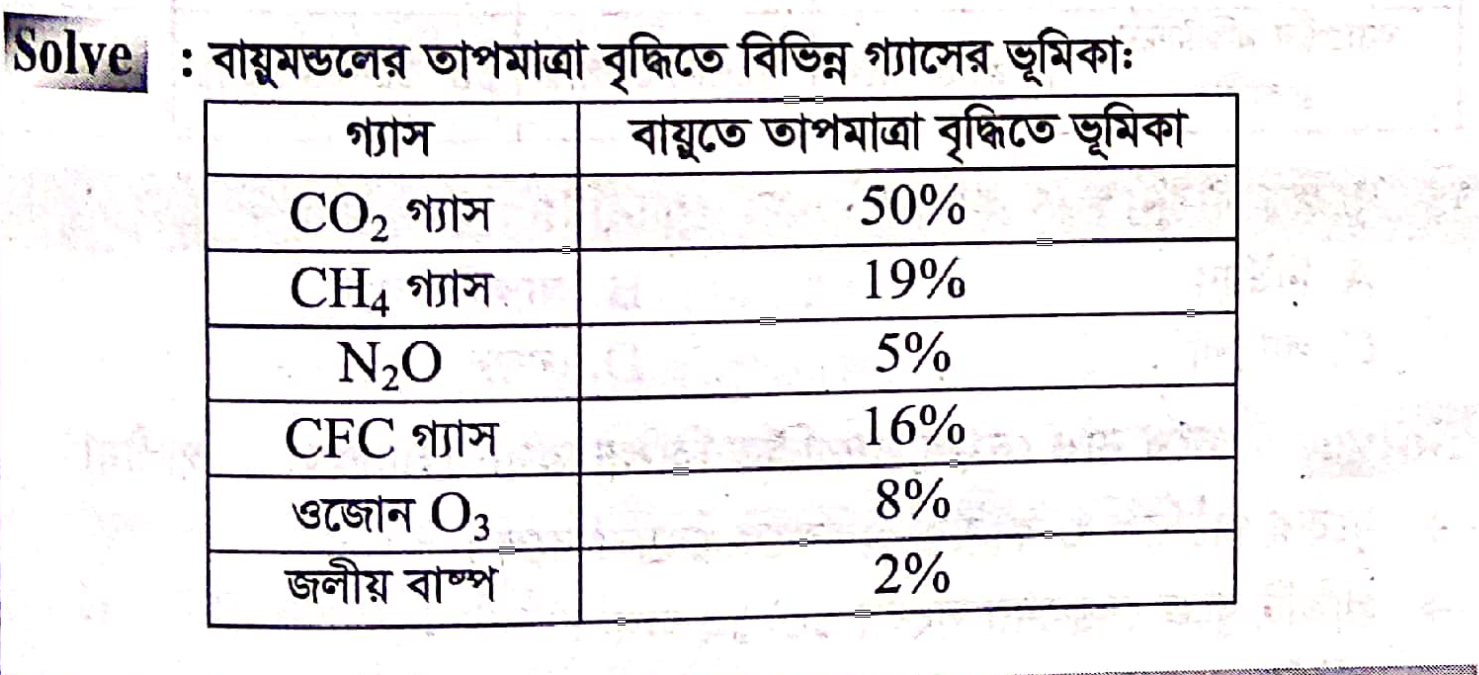 নিচের কোন গ্যাসটি বায়ুমন্ডলের তাপমাত্রার বৃদ্ধিতে সবচেয়ে বেশি ভূমিকা রাখে?