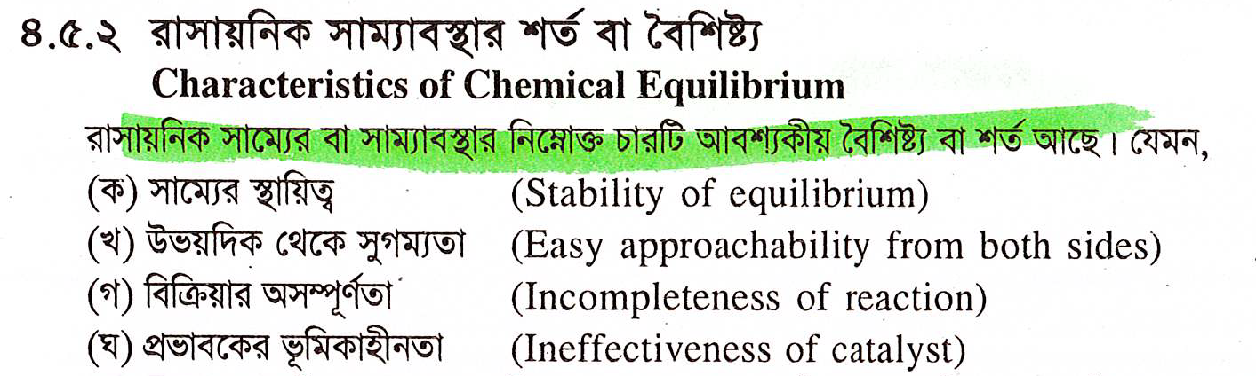 কোনটি রাসায়নিক সাম্যাবস্থার বৈশিষ্ট্য নয়?