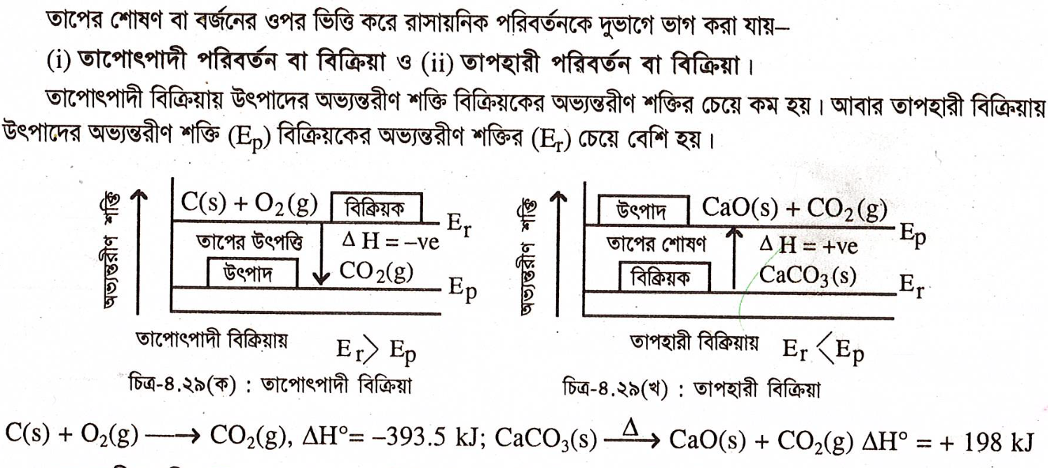 তাপোৎপাদী বিক্রিয়ার ক্ষেত্রে কোনটি সত্য?