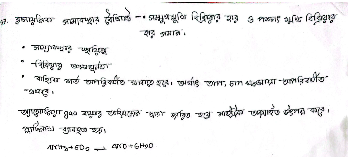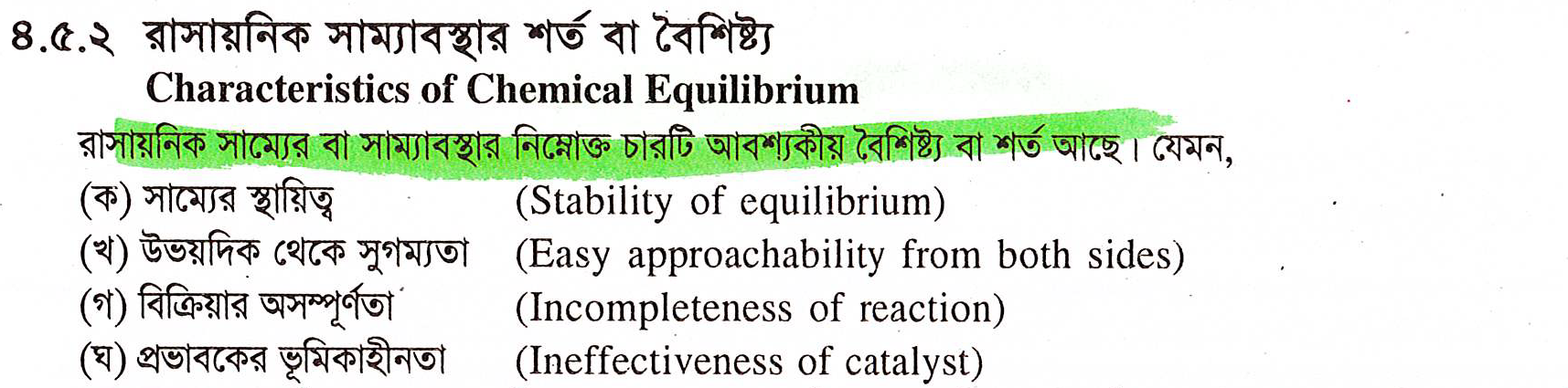 রাসায়নিক সাম্যাবস্থার শর্ত চারটি।যথা-