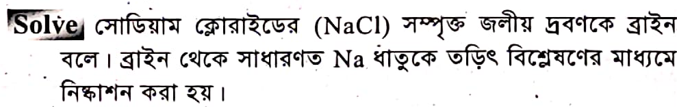 NaCl এর সম্পৃক্ত জলীয় দ্রবণকে ব্রাইন বলে।