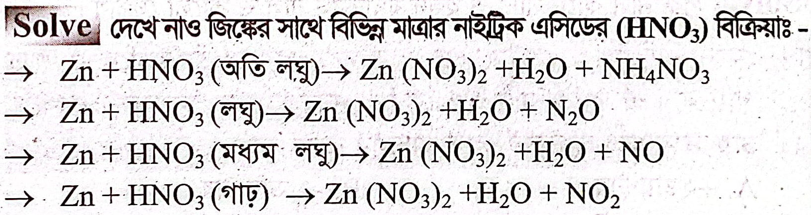 Zn এর সাথে শীতল ও অতি লঘু HNO3 এর বিক্রিয়ার ফলে উৎপন্ন হয়-