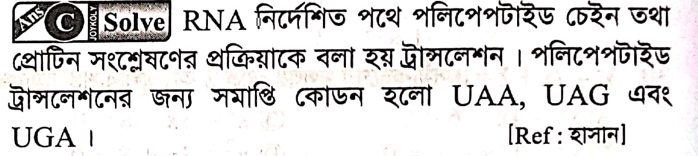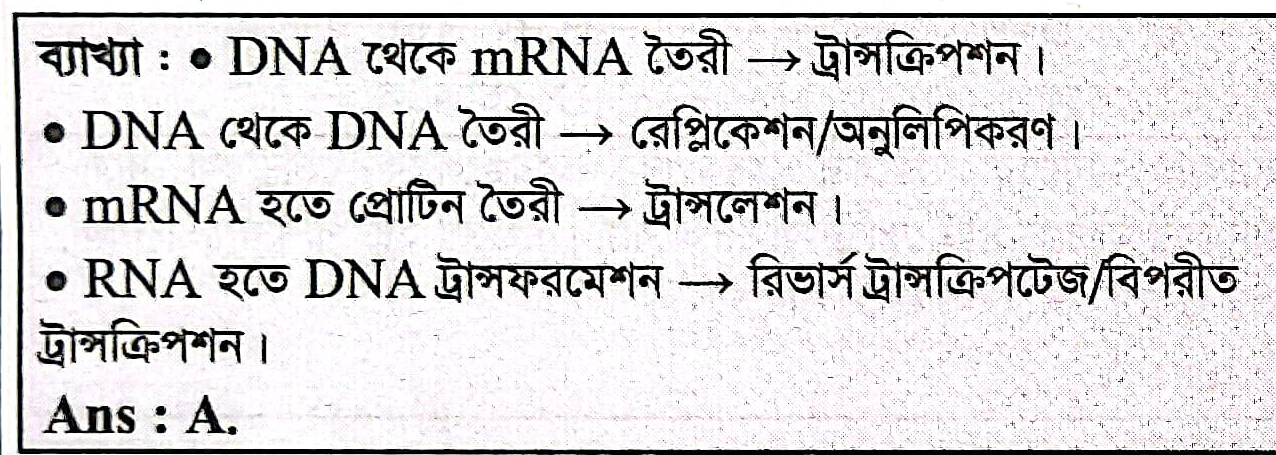 DNA থেকে mRNA তৈরীর প্রক্রিয়াকে কী বলে?