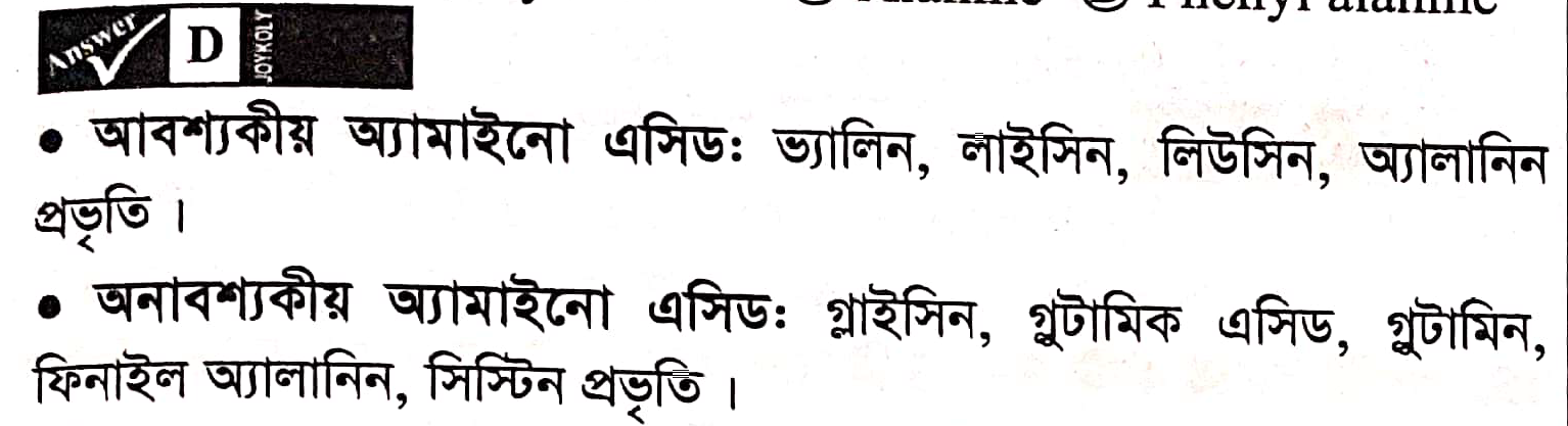 অত্যাবশ্যকীয় অ্যামাইনো এসিড কোনটি?