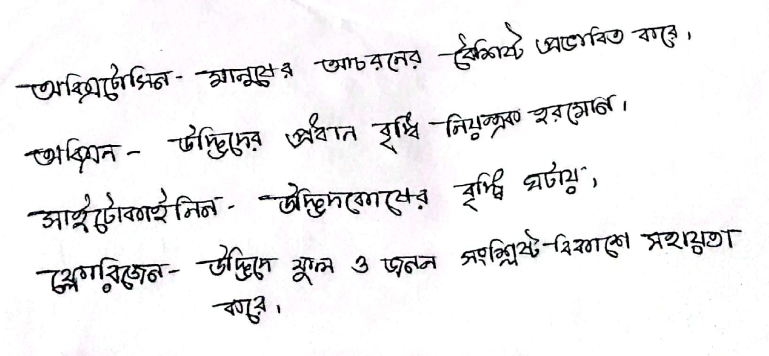 নিম্নের কোনটি উদ্ভিদের বৃদ্ধি নিয়ন্ত্রক হিসেবে কাজ করে না?